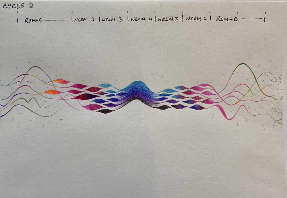 Sonambula (2025) graphic score for an hour-long piece, based on sleep cycles, for 5+ improvising players