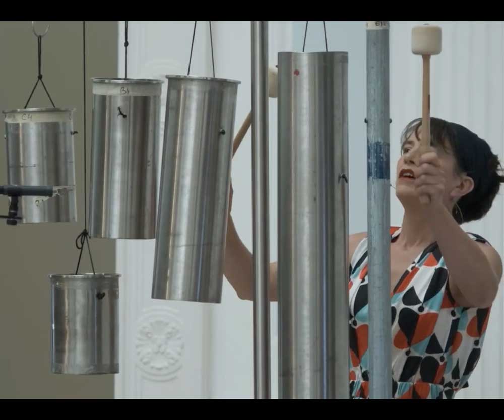 Me improvising on the sound sculpture I created for the Irish National Heritage Park. 2024.